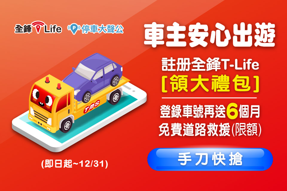 Read More前往註冊全鋒T-Life會員,領取道路救援券,再登錄車籍,即可獲得免費道路救援30公里6個月權益。