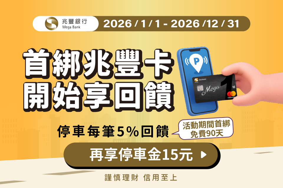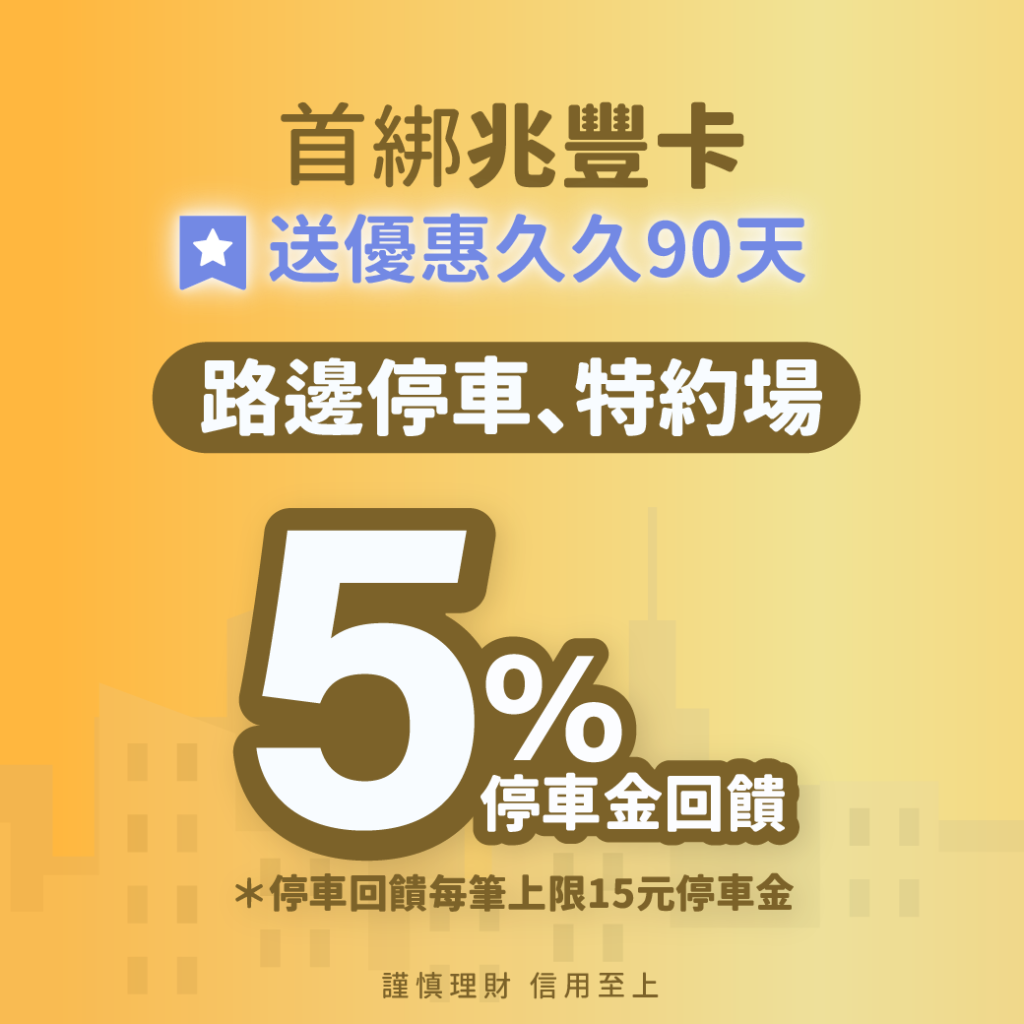 【💳 兆豐銀行信用卡】首次綁定開始享回饋!綁就送優惠久久90天,再拿停車金15元,筆筆5%任你停!-停車大聲公