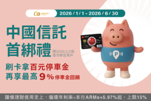 【💳 中國信託信用卡】停車大聲公綁定中信卡,首刷贈 100 元停車金,再享最高 9% 回饋!-停車大聲公停車大聲公App首次綁定任一「中國信託銀行信用卡」,贈送三期訂閱方案,快來領取優惠久久 90 天(期間停車享 5% 回饋) ,加碼停車金 100 元 【💳 中國信託信用卡】停車大聲公綁定中信卡,首刷贈 100 元停車金,再享最高 9% 回饋!-停車大聲公2026-01-01 【🚙 員林市|路邊停車】2026 會員限定福利!停車費每筆 20% 回饋,繳費一定要用停車大聲公!2025-12-31 【🌲🥚 聖誕驚喜方程式】特約停車場自動扣款就🪄請你吃蛋撻,2026顆 等你領!-停車大聲公2025-12-12 【 新安東京海上|限時登錄優惠 】新安東京海上網路投保任意險82折! 90天訂閱+停車金限時搶 -停車大聲公2025-11-05